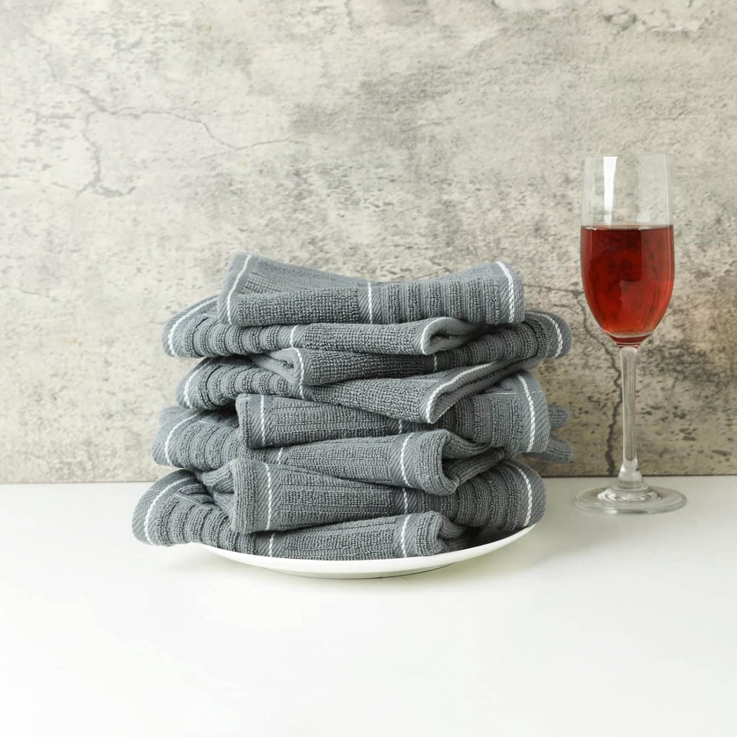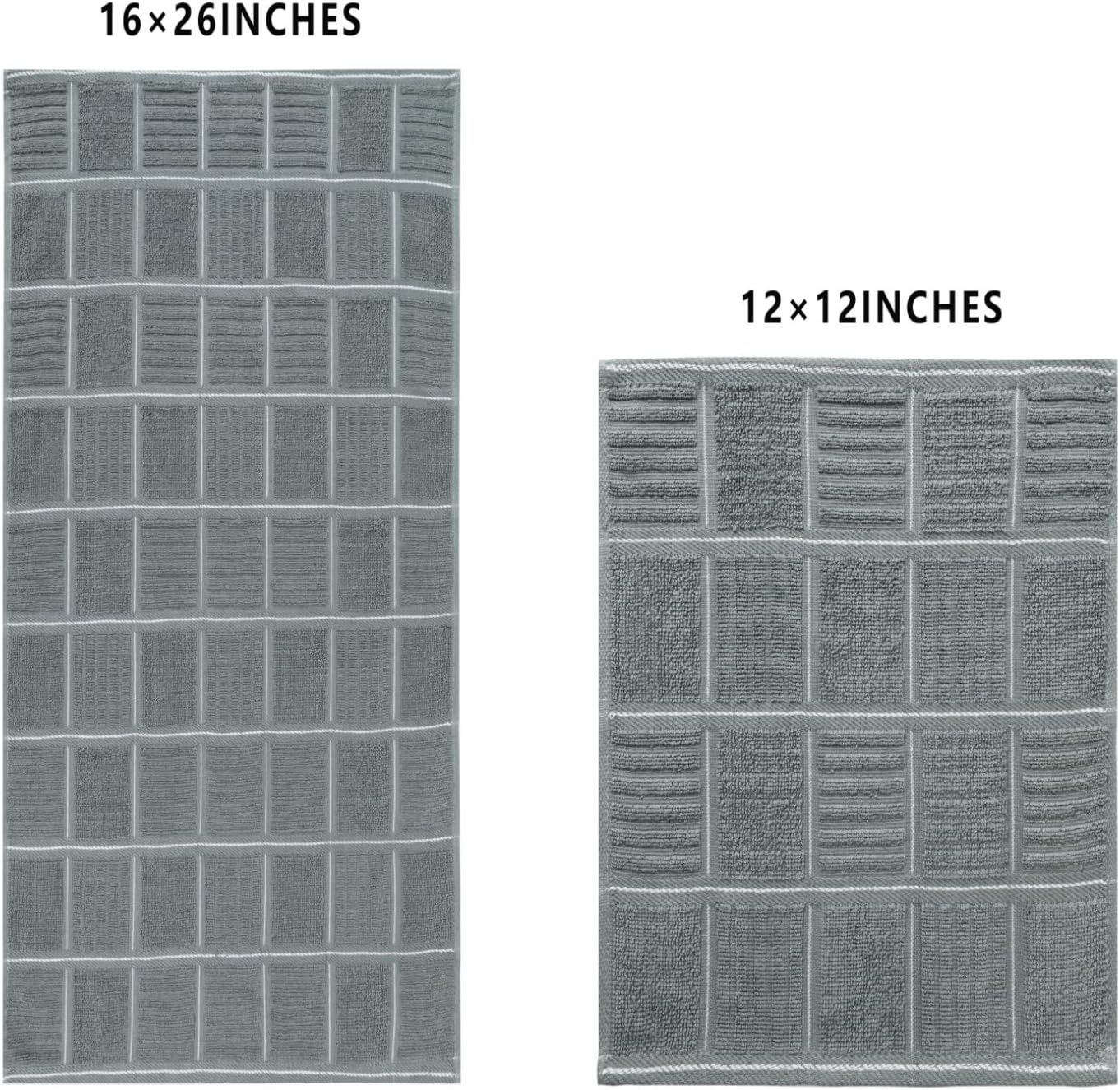 Kitchen Towels-16×26 Inches and Dishcloths-12×12 Inches Set-Gray