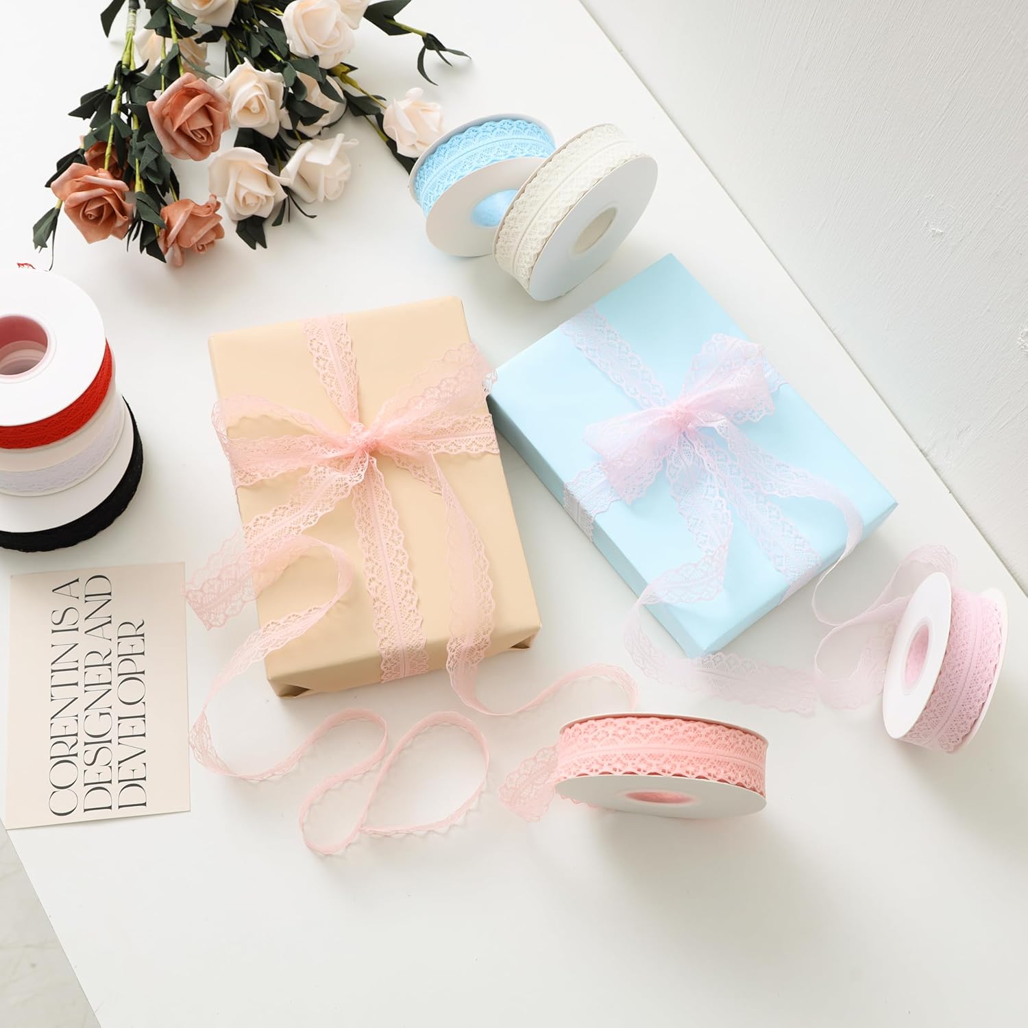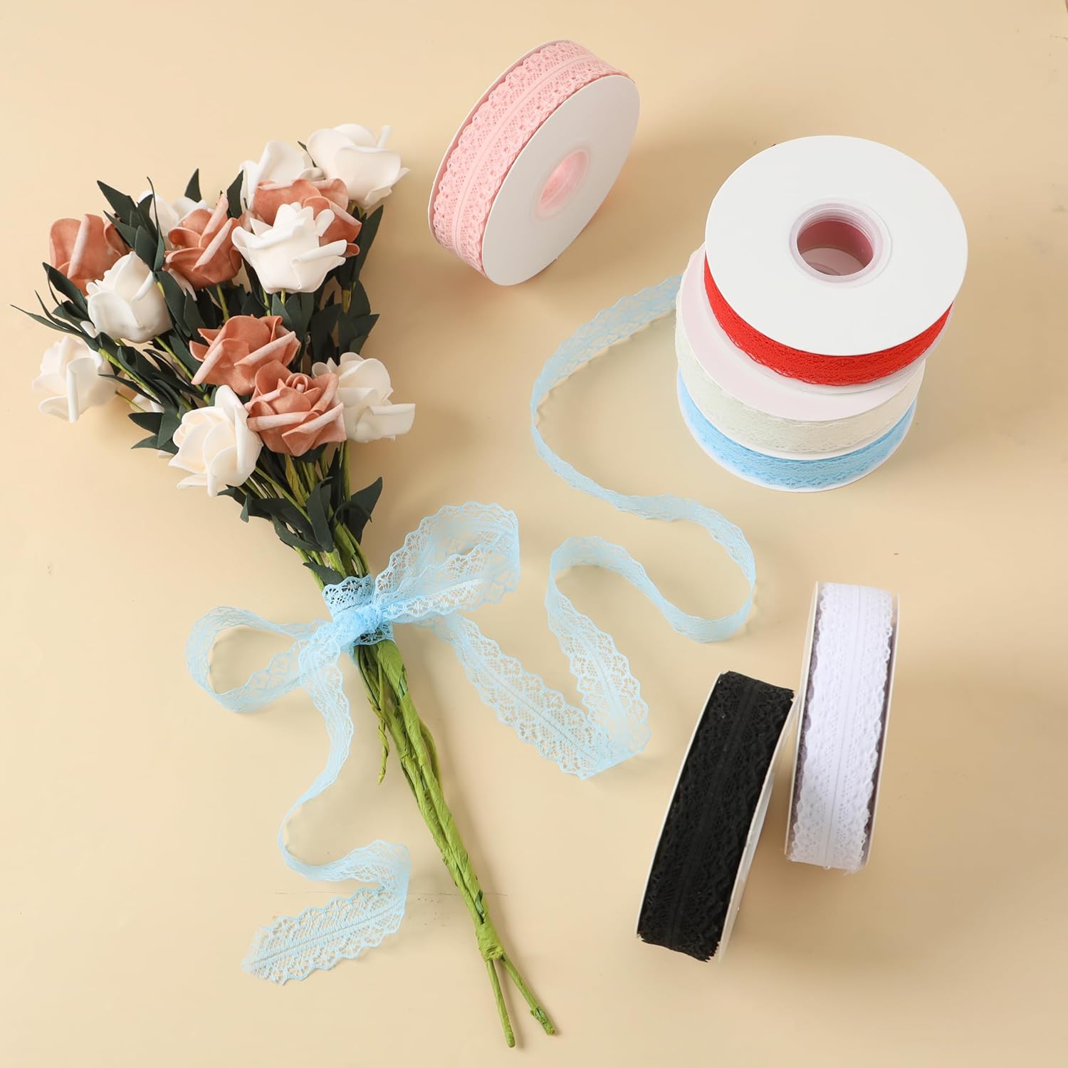 25 Yards Lace Trim Ribbon, 1.2 Inch Wide Vintage Lace Ribbons for Gift Wrapping, Flower Ribbon, Wedding Decoration & DIY Crafts Sewing (Light Pink, 25 Yards)