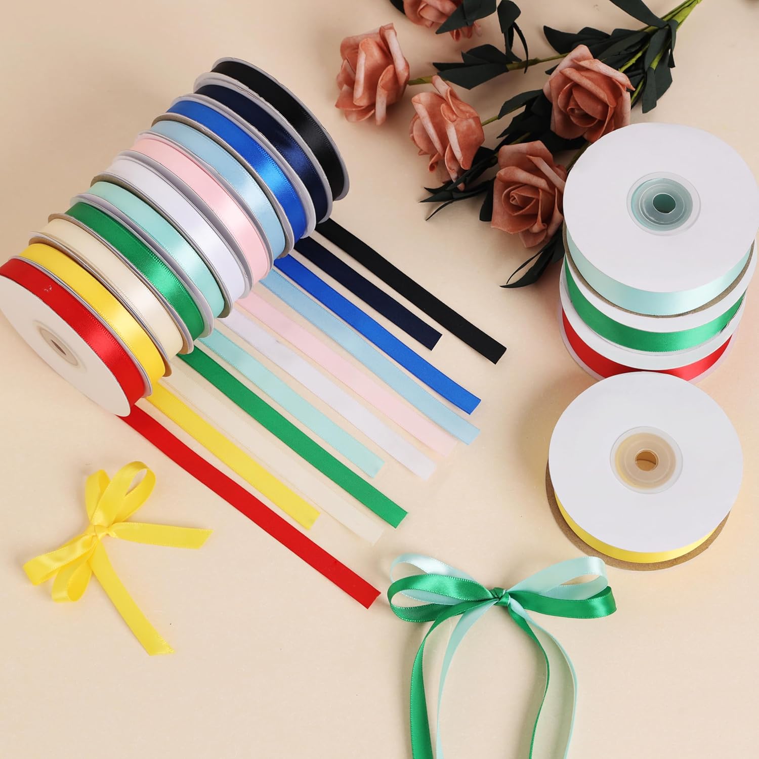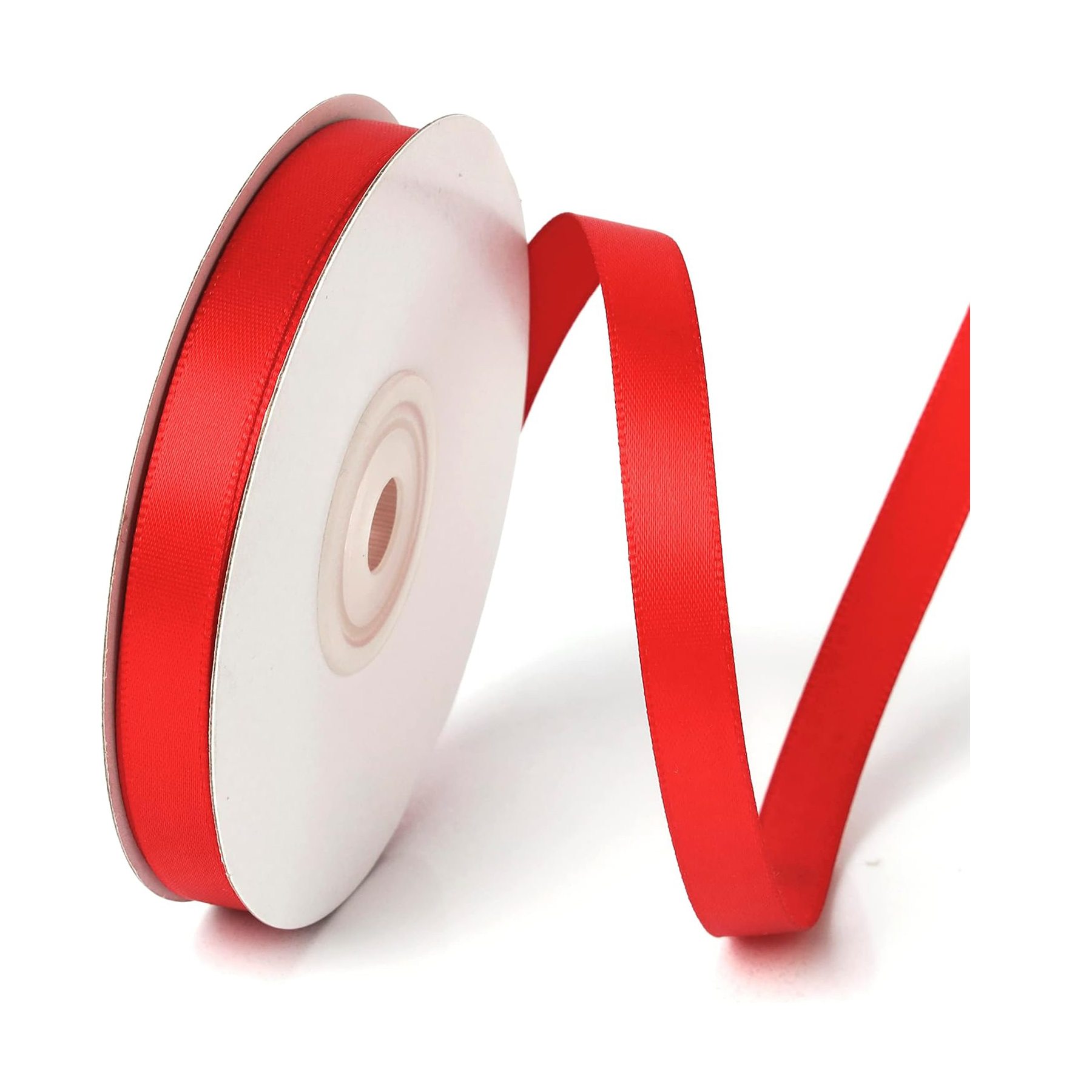 3/8 Inch Single Face Solid Color Satin Ribbon Roll, Ribbons Great for Gift Wrapping, Crafts, Wedding Party Decoration, Hair Bows Making and Other Sewing Projects (3/8″ X 25 Yards, Red)