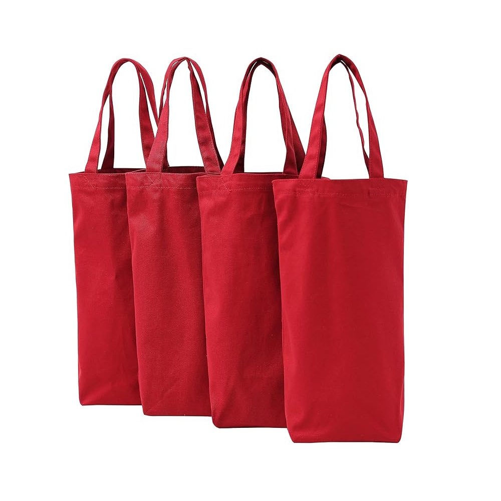 Wine Tote Bag,10x7x2 inches,Reusable Cotton Canvas Carrier Wine Bags with Drawstring Label-Red